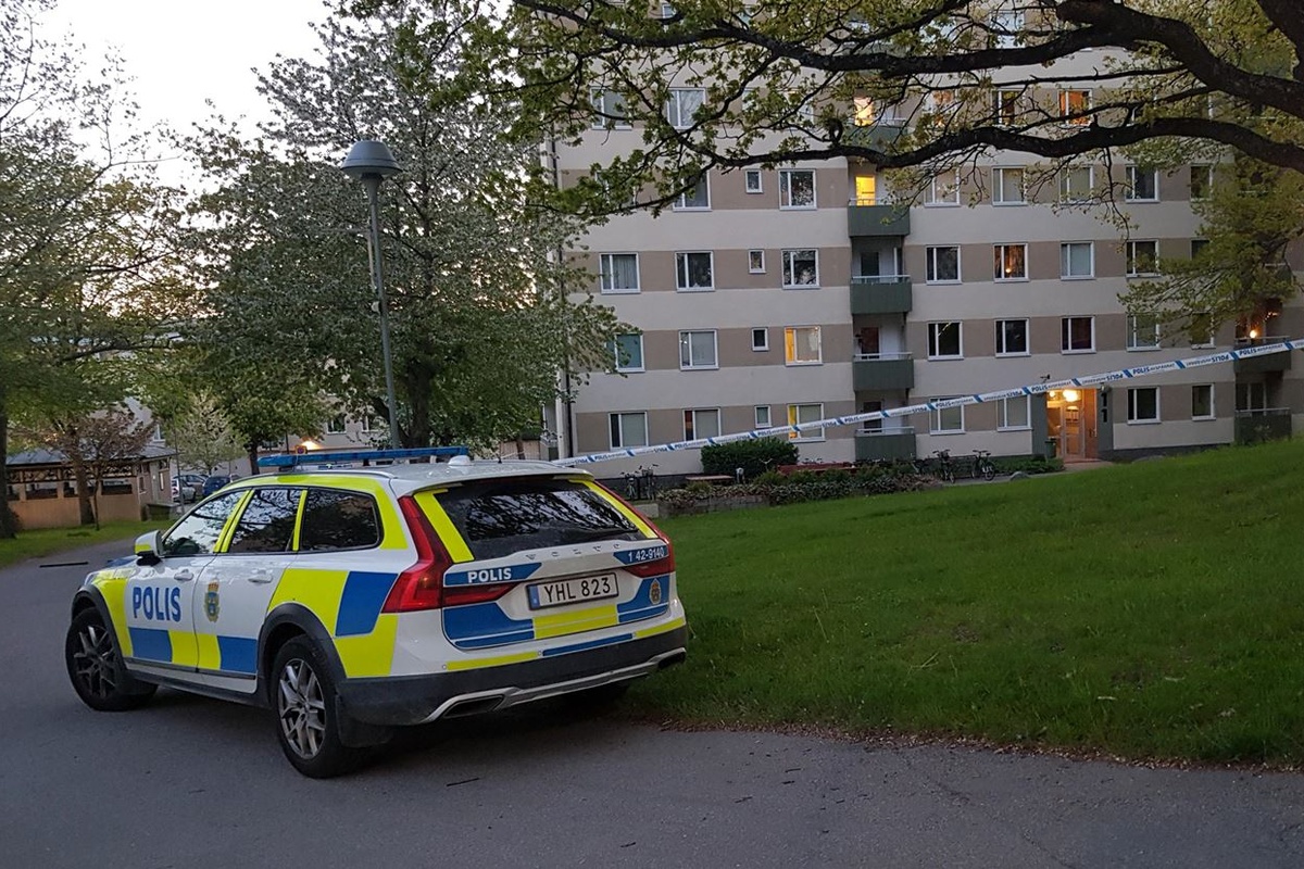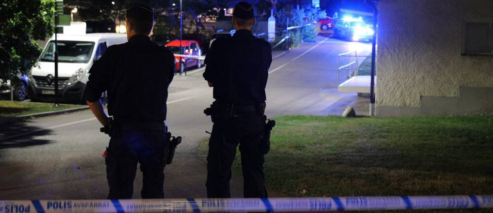 En stor polisinsats pågår i området på torsdagskvällen. Polisen larmades till platsen klockan 21. Två personer har förts till sjukhus och är kritiskt skadade. Bild från dödsskjutningen i berga tidigare i år. Västra berga är kraftigt berikat.